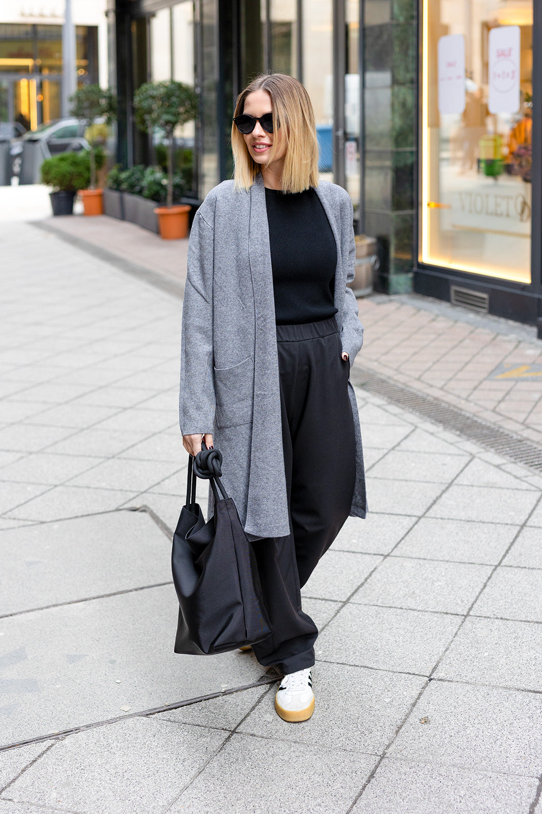 Ez a világosszürke kardigán a lezser elegancia tökéletes megtestesítője. Finom, rugalmas anyaga puha tapintású és kényelmes viseletet biztosít, miközben letisztult szabása modern, minimalista megjelenést kölcsönöz. A hosszított fazon és a nyitott, gomb nélküli kialakítás könnyed, nőies esést ad, így rétegezéshez is ideális. Tökéletes választás hétköznapi szettekhez, egy póló vagy ing fölé, akár városi sétához, akár utazáshoz.