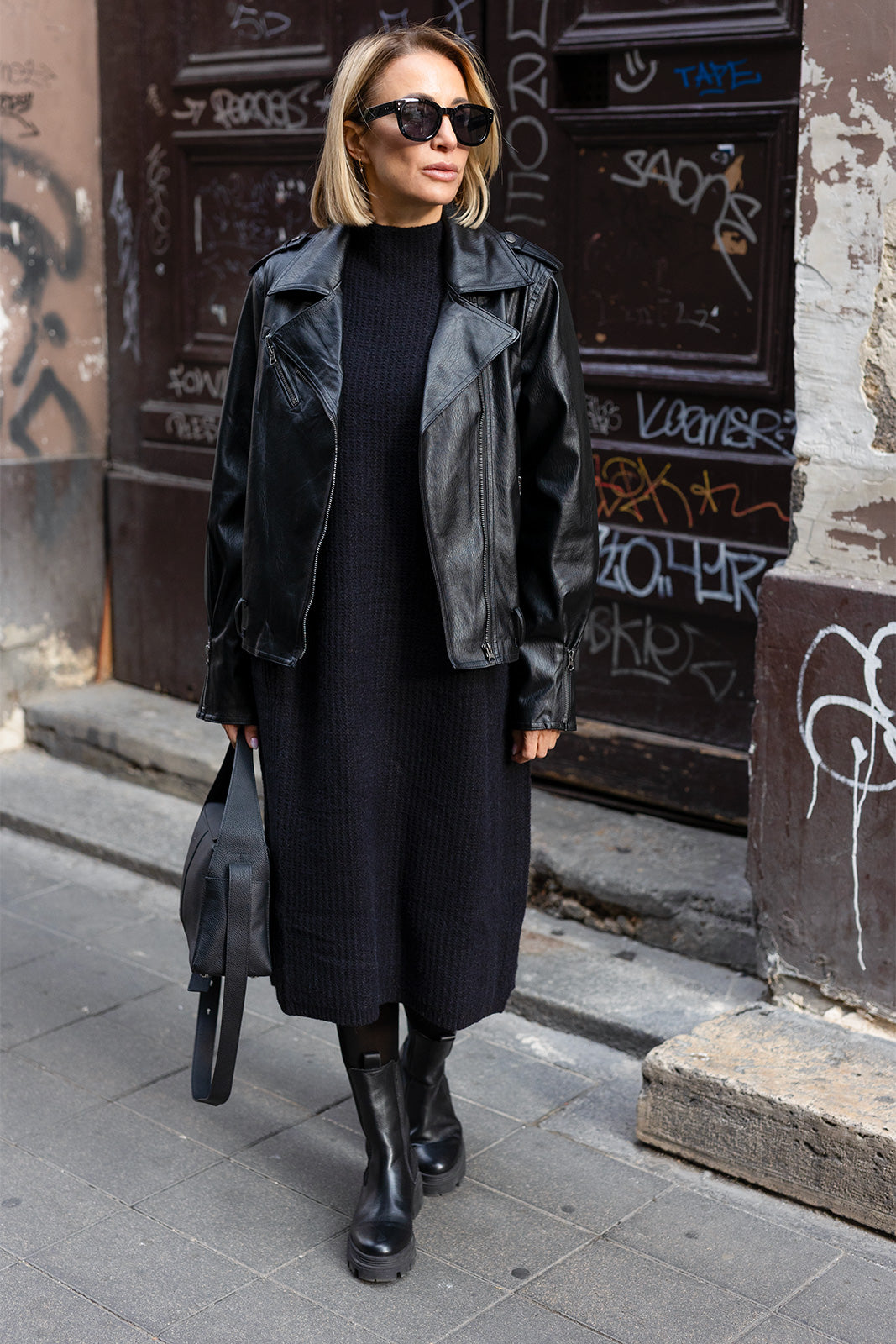 A fekete bőr biker dzseki egy igazi örök klasszikus, amely minden gardrób alapdarabja. Prémium minőségű, puha valódi bőrből készült, így egyszerre tartós és kényelmes viselet. A karakteres szabásvonal, a ferde cipzár és a vállpántok modern, vagány megjelenést biztosítanak. Könnyedén kombinálható farmerrel, ruhával vagy akár elegánsabb szettekkel is, attól függően, milyen hangulatot szeretnél. Ez a dzseki tökéletes választás azoknak, akik stílusosan és magabiztosan szeretnek megjelenni.
