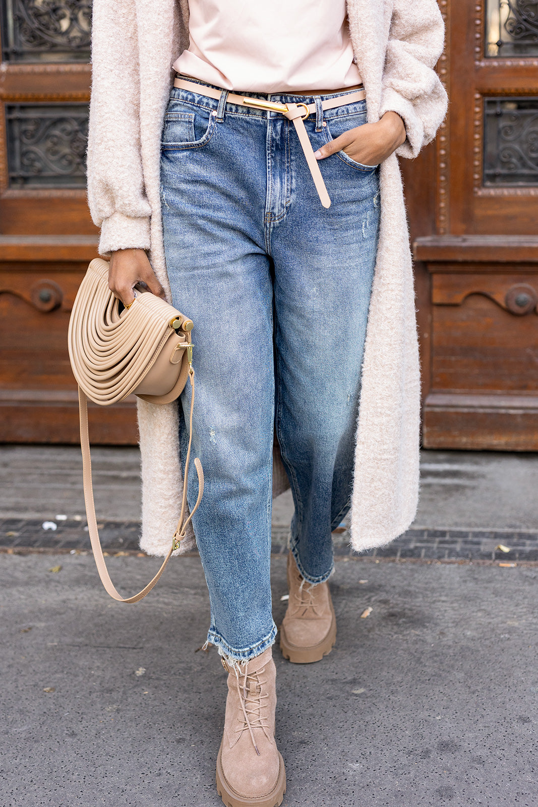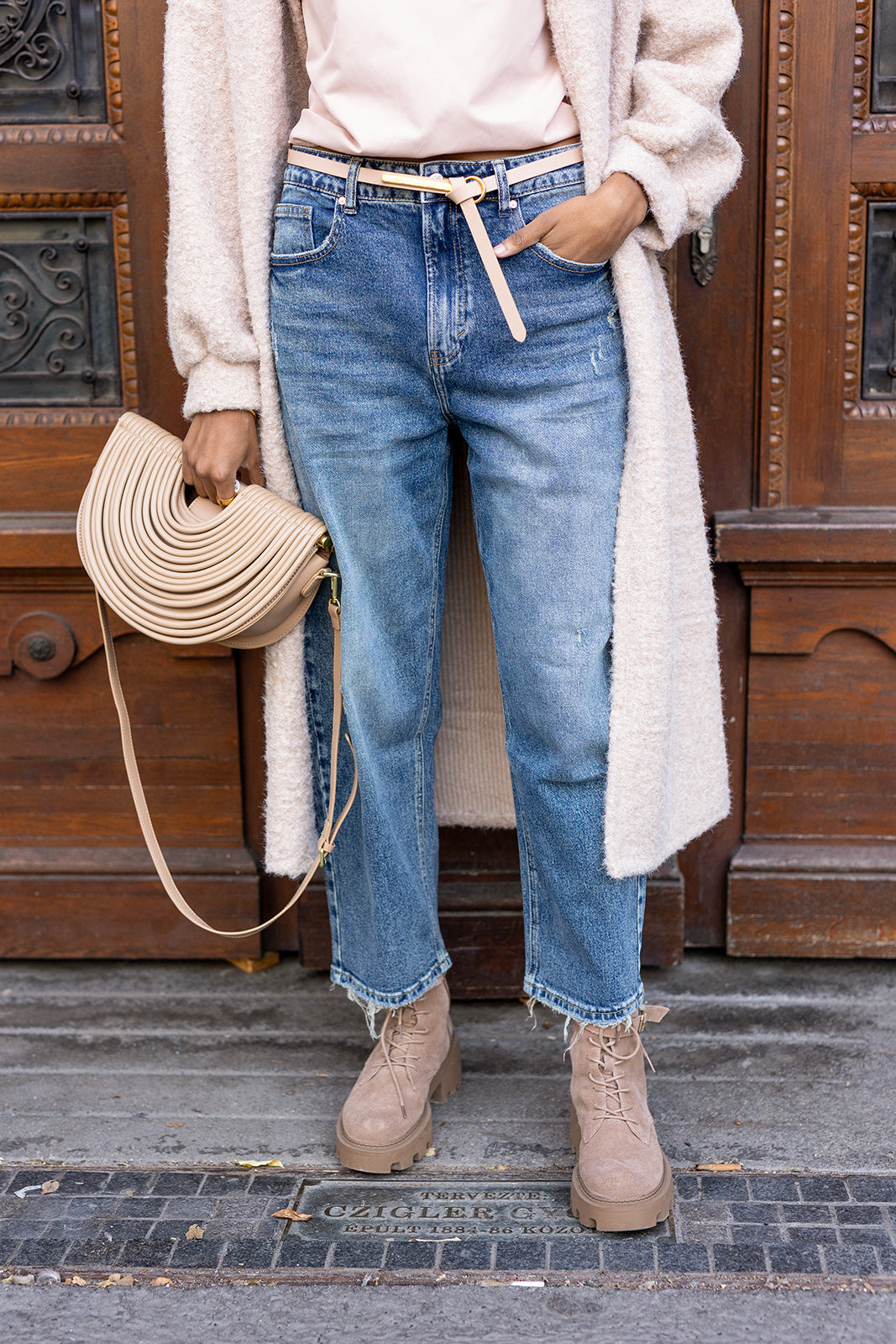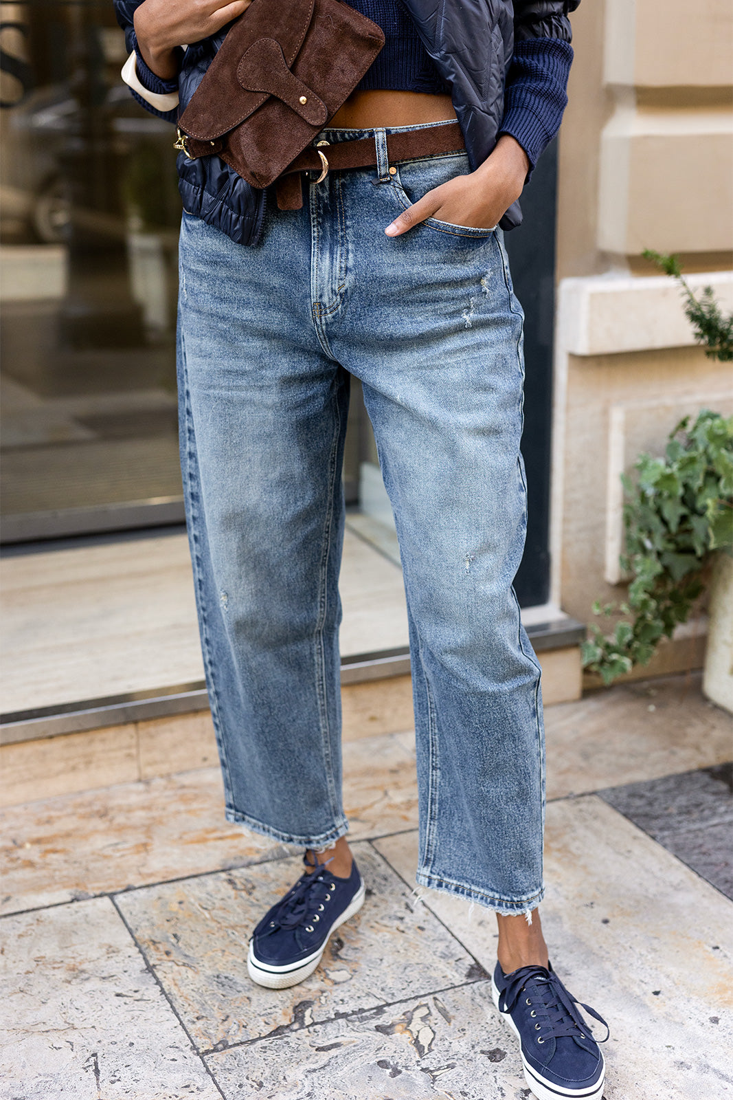 Ez a női farmernadrág a lezser, mégis stílusos megjelenés kulcsdarabja. Klasszikus középkék színével és enyhén koptatott hatásával időtálló választás, amely tökéletesen illik mindennapi outfitekhez. Egyenes szabása és kényelmes derékrésze modern, laza viseletet biztosít, míg a nyers szegély extra trendi részletet ad. Magas minőségű pamutból készült, így tartós és komfortos hordást garantál. Kombinálható sportcipővel, bakancscal vagy akár elegánsabb darabokkal is, így sokoldalúan beépíthető a ruhatáradba. Ez a farmer ideális választás városi sétákhoz, munkanapokra vagy hétvégi programokhoz egyaránt.