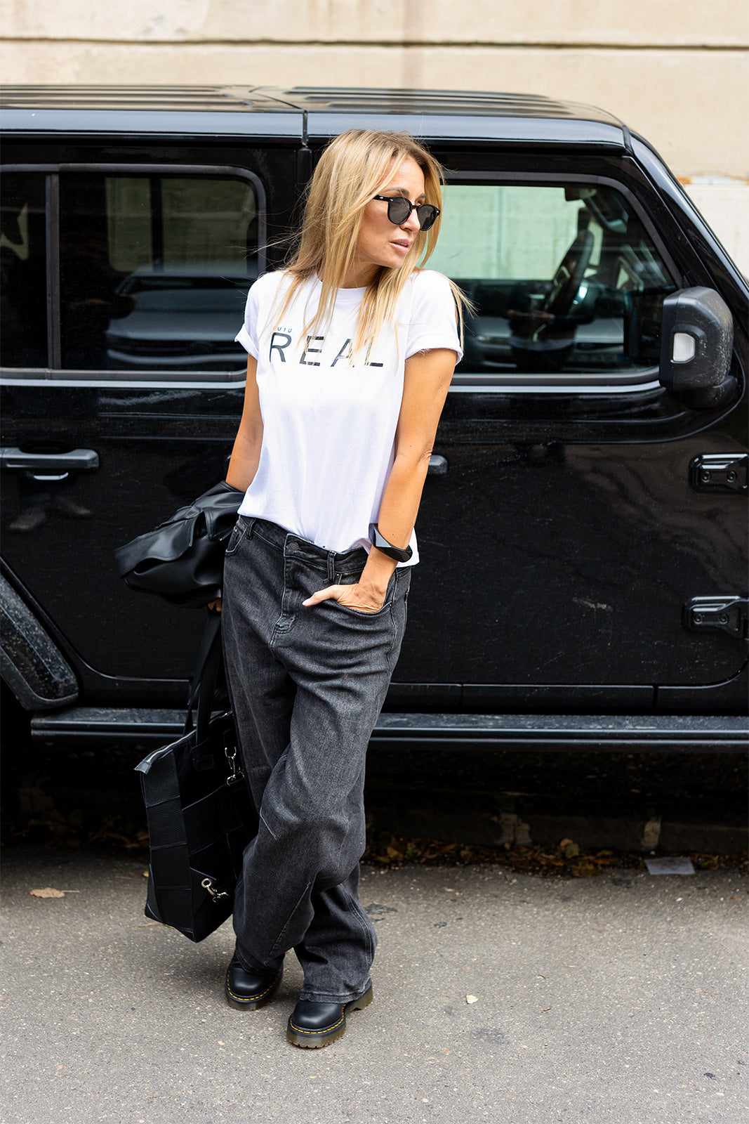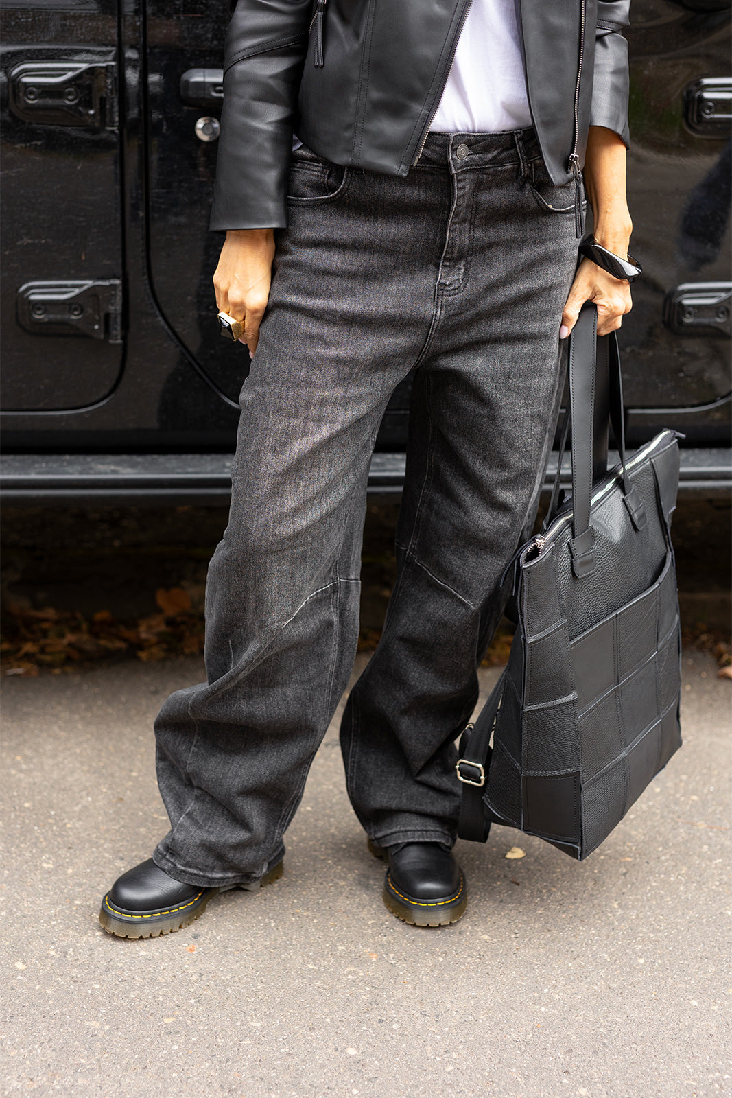 Ez a sötétszürke, bő szárú női farmer, amely modern, laza szabásával kényelmes viseletet biztosít a mindennapokra. A lezser fazon és az enyhén koptatott hatás trendi, utcai stílust kölcsönöz. Könnyen kombinálható sportos pólókkal, bőrkabáttal vagy elegánsabb felsőkkel is, így sokoldalú alapdarab a gardróbban. Tartós farmeranyagból készült, amely hosszú élettartamot garantál. Ez a bő szárú farmer tökéletes választás azoknak, akik szeretik a divatos, de kényelmes megoldásokat.