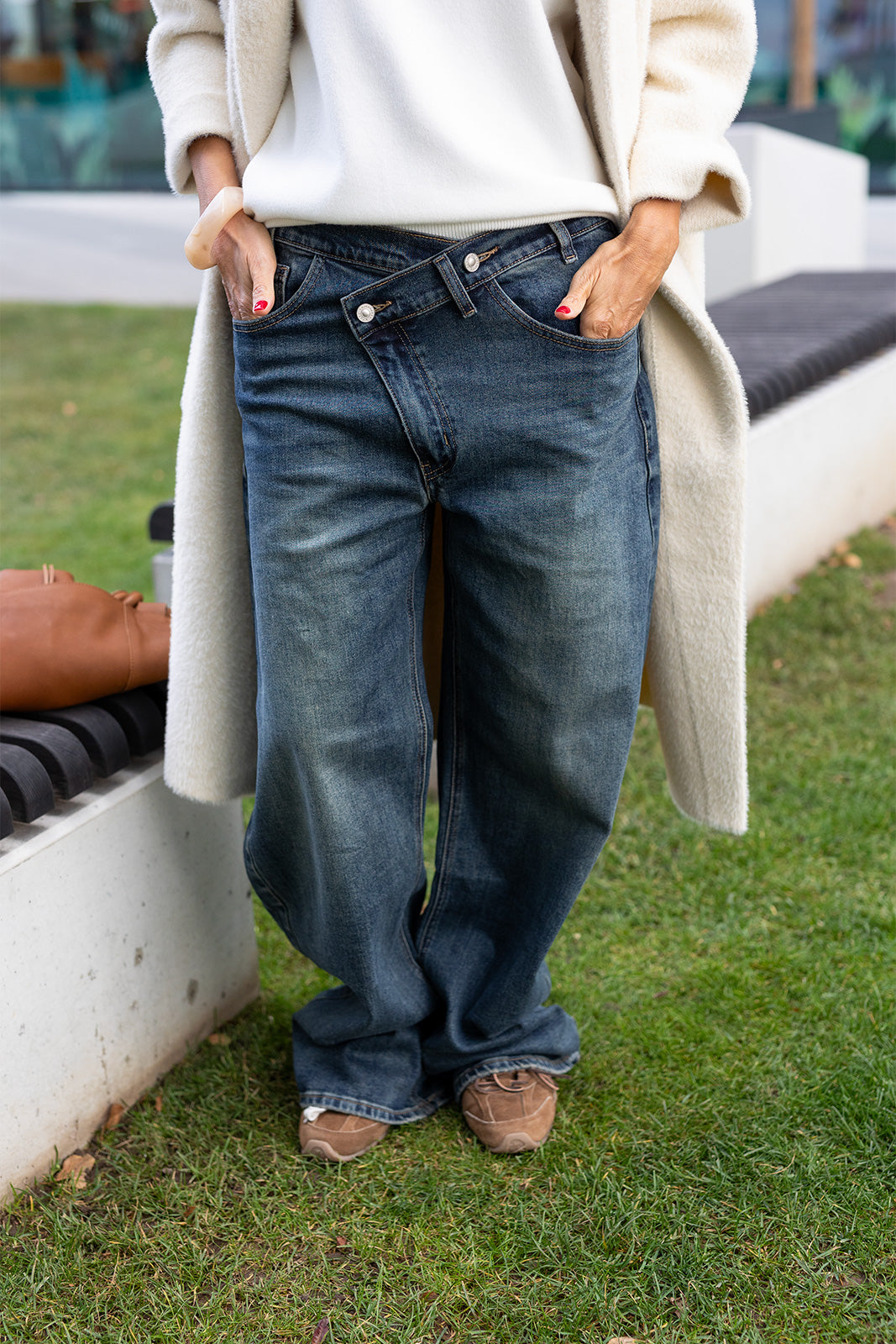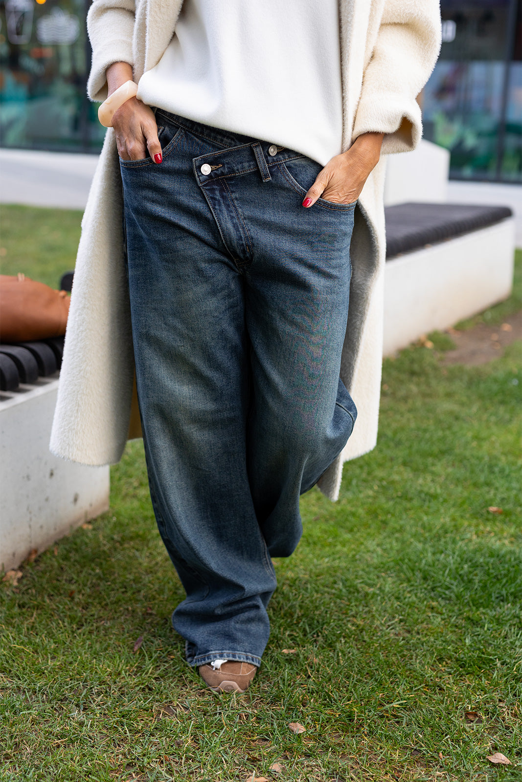 Ez a bő szárú farmernadrág modern, lezser fazonja tökéletes választás mindennapi, kényelmes outfitekhez. Középkék mosása és enyhén koptatott hatása trendi, mégis időtálló megjelenést biztosít. A laza, oversized szabás kiemeli a vagány street style hangulatot, miközben maximális mozgásszabadságot nyújt. Könnyedén kombinálható pulóverekkel, kabátokkal vagy elegánsabb felsőkkel is. A nadrág ideális választás azoknak, akik stílusos, mégis praktikus darabot keresnek az őszi-téli szezonra.