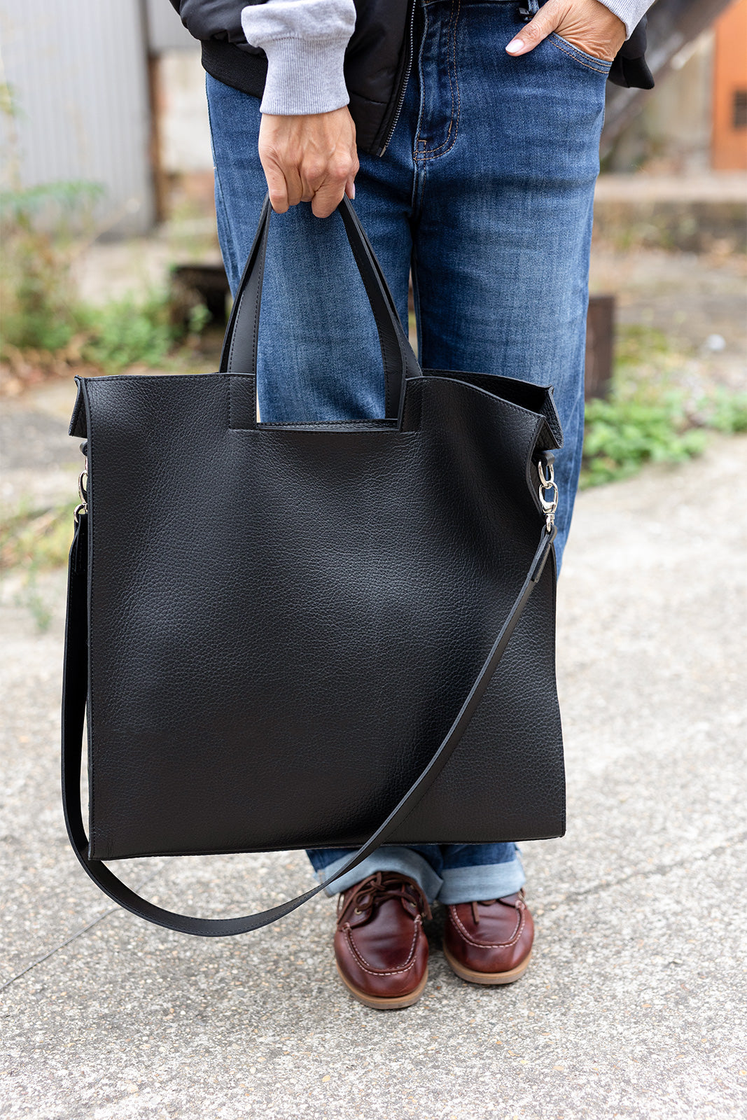 Ez a prémium fekete bőr táska a letisztult elegancia megtestesítője, amely tökéletesen illik mindennapi és üzleti megjelenéshez is. A strukturált formájú, tágas kialakításnak köszönhetően kényelmesen elfér benne minden alapvető holmi – laptop, dokumentumok vagy személyes kiegészítők. A finom szemcsés, valódi bőr textúra és a minimalista dizájn modern, időtálló stílust kölcsönöz. A rövid fül és a levehető, állítható vállpánt sokoldalú hordási lehetőséget biztosít. Egy igazán stílusos és minőségi bőr shopper táska, amely a funkcionalitást és az eleganciát tökéletes egyensúlyban tartja.