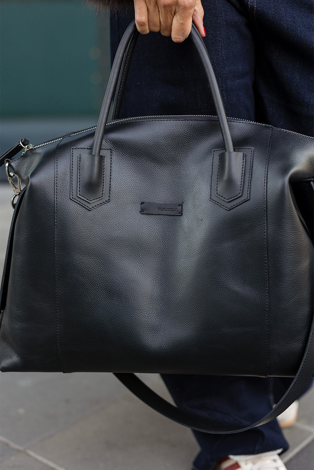 Ez a prémium minőségű, fekete valódi bőrből készült táska elegáns, mégis modern megjelenést kölcsönöz minden outfitednek. Strukturált kialakítása és letisztult vonalai miatt tökéletes választás munkába, utazáshoz vagy hétköznapi viselethez is. Tágas belső tere könnyedén elnyeli a mindennapi essentials-t, miközben a masszív fogantyúk és az állítható vállpánt maximális kényelmet biztosítanak. A finom szemcsézetű bőr és a minőségi fém kiegészítők időtálló eleganciát sugároznak. Ez a fekete prémium bőr táska a stílus és funkcionalitás tökéletes egyensúlya — egy valódi alapdarab minden gardróbban.