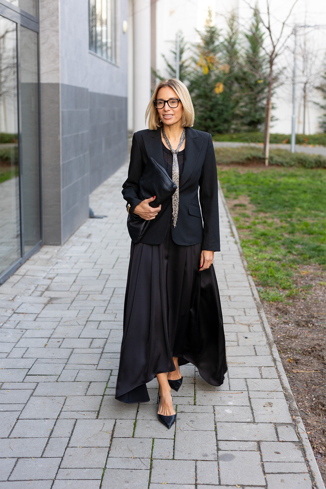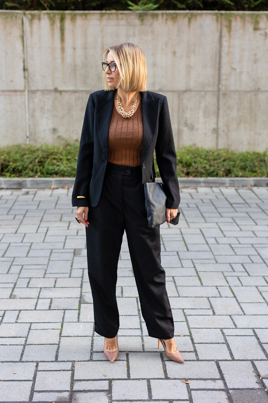 Ez a prémium női blézer egy időtlen, elegáns darab, amely tökéletesen illeszkedik bármely modern, letisztult ruhatárba. Kifinomult szabása és strukturált vállmegoldása magabiztos, nőies megjelenést biztosít. A klasszikus fekete szín sokoldalúan kombinálható, így alkalmi és hétköznapi szettekhez egyaránt ideális. Anyaga minőségi, jól tartja a formáját, miközben kényelmes viseletet nyújt. A szabásvonalak karcsúsítanak, így a blézer egyszerre elegáns és alakkiemelő. Összességében egy olyan alapdarab, amely hosszú távon is stílusos befektetés.