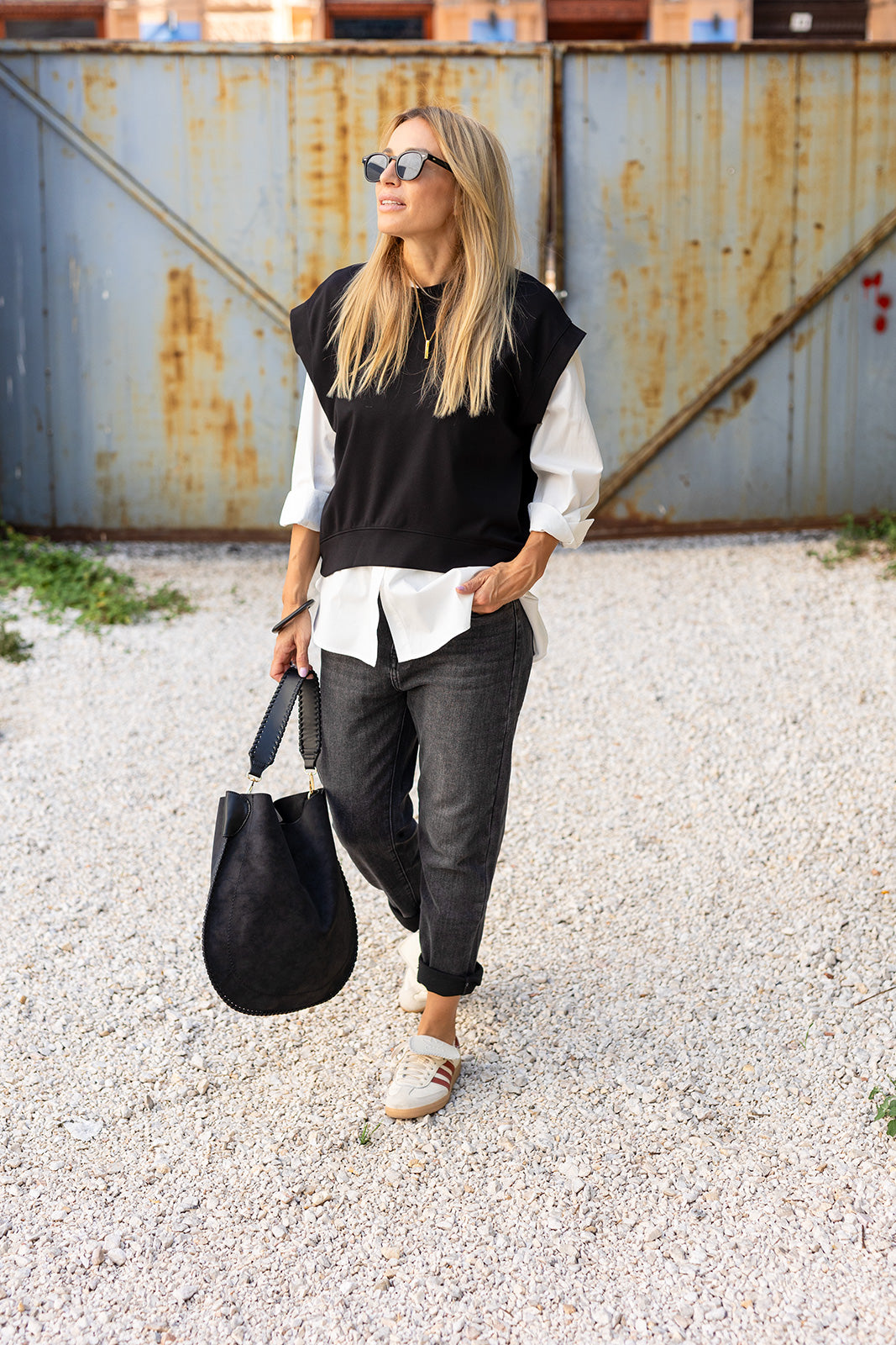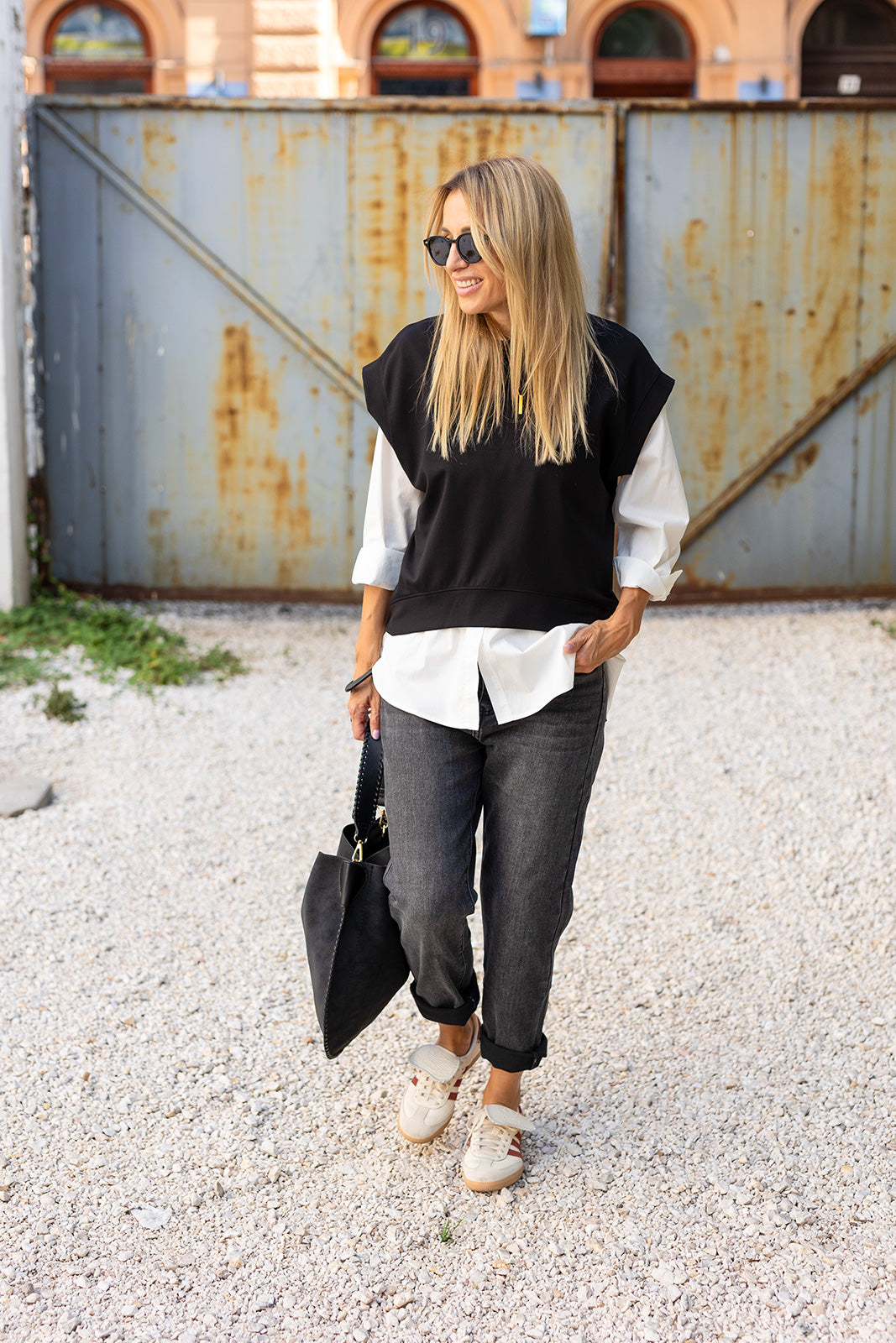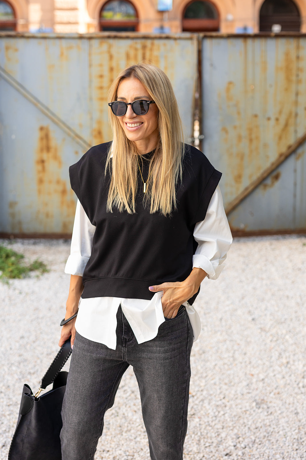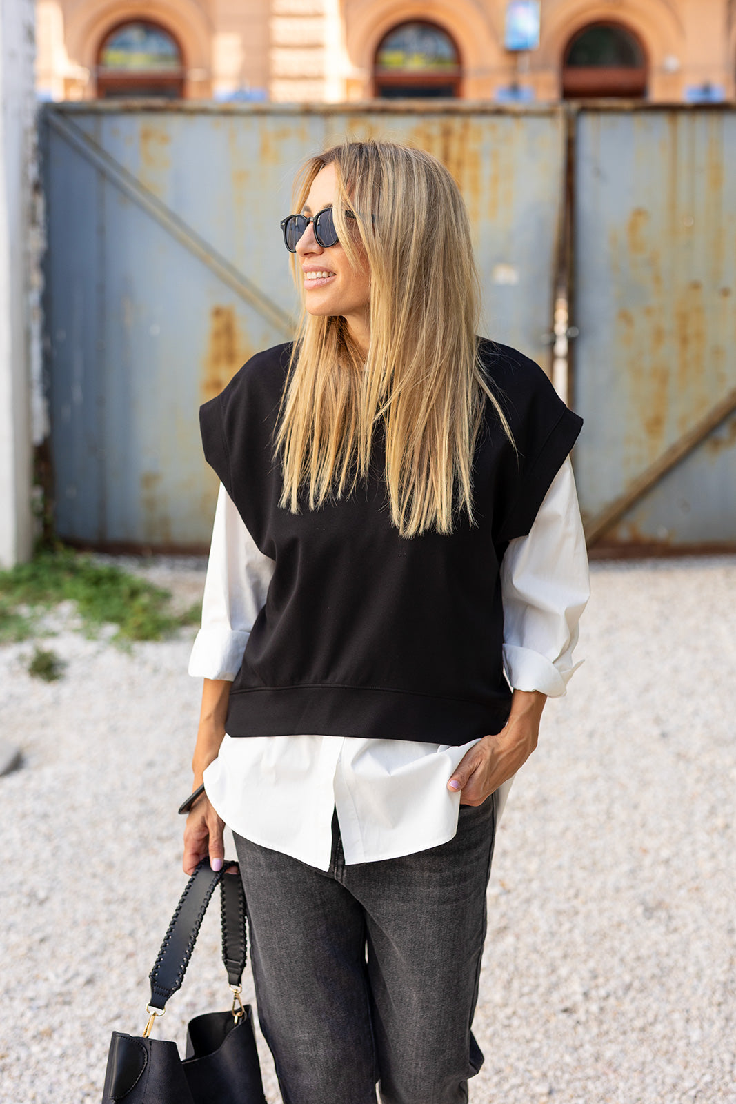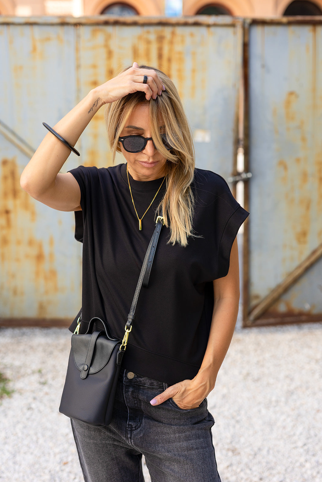 Ez a fekete felső modern, letisztult darab, amely tökéletes választás a hétköznapokra és lazább alkalmakra is. A bő szabás kényelmet biztosít, miközben a strukturált ujjmegoldás stílusossá teszi a megjelenést. Minimalista dizájnja miatt könnyen kombinálható nadrággal vagy szoknyával, így sokoldalú alapdarabja lehet a ruhatárnak. A fekete szín eleganciát és időtlenséget sugároz, ezért szinte bármilyen kiegészítővel jól párosítható. Ideális választás azoknak, akik szeretik az egyszerű, de hatásos outfiteket.