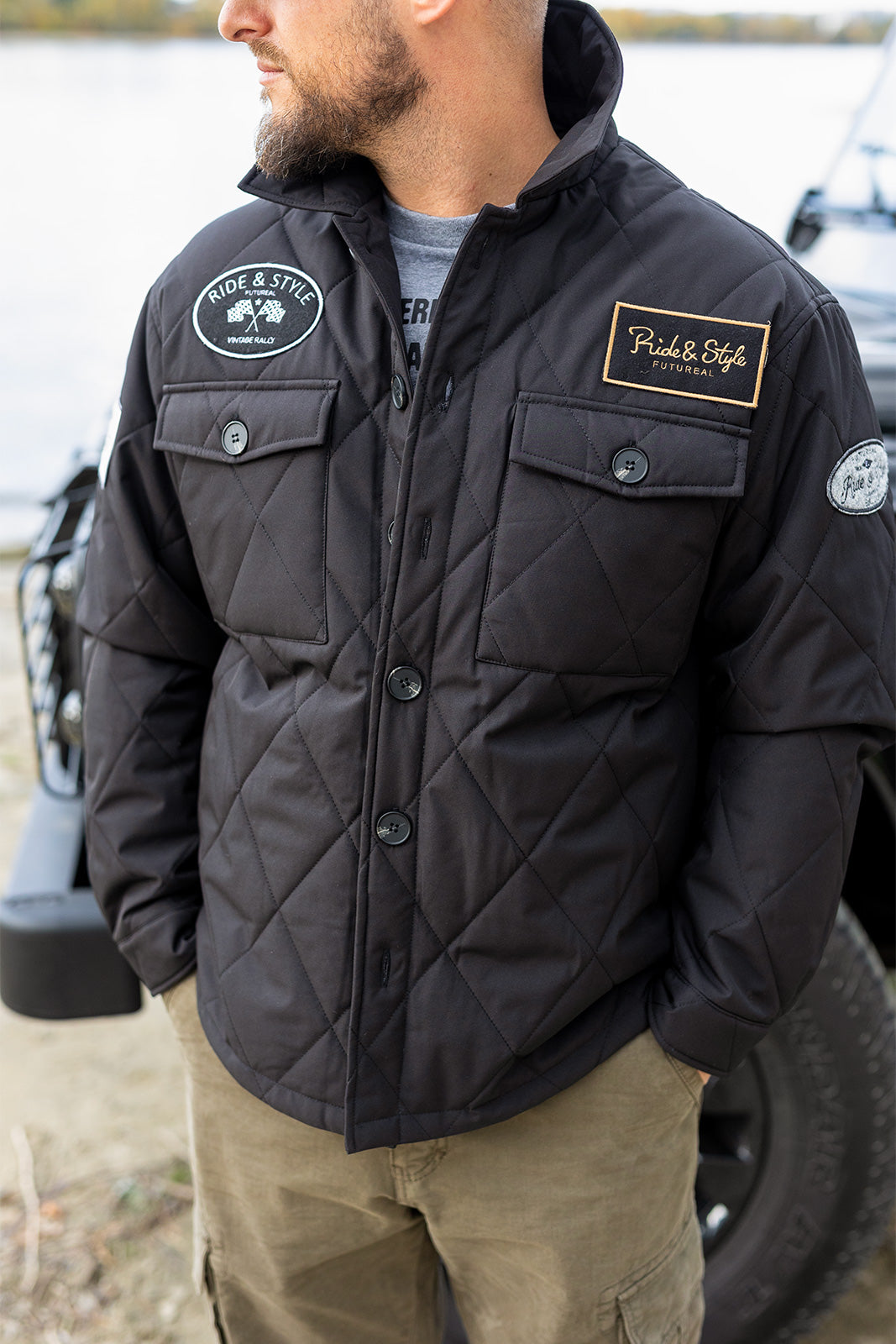 Ez a fekete, steppelt kabát sportos és vagány megjelenést biztosít a hűvösebb napokon. Elöl hímzett „Ride & Style” patch-ek díszítik, amelyek karakteres, motoros hangulatot kölcsönöznek. Praktikus gombos záródással és két mellzsebbel készült, így egyszerre funkcionális és stílusos. Könnyű, de meleg anyaga ideális átmeneti időszakban vagy rétegezve a téli hónapokban is. Egy kabát, amely tökéletes választás azoknak, akik szeretik ötvözni a kényelmet és az egyedi stílust.