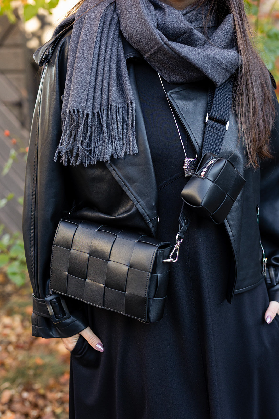 Ez a bőr táska modern, fonott hatású kialakításával igazi statement darab a hétköznapokra és alkalmakra egyaránt. Minőségi, strukturált műbőrből készült, amely tartós, mégis puha tapintású. Állítható vállpántjának köszönhetően kényelmesen viselhető vállon vagy keresztben. Kompakt mérete ellenére jól pakolható, így tökéletes választás mindennapi használatra. Letisztult, fekete árnyalata bármely outfithez könnyen illeszkedik, és időtlen eleganciát sugároz. Ha divatos, mégis praktikus keresztpántos táskát keresel, ez a modell garantáltan kedvenceddé válik.