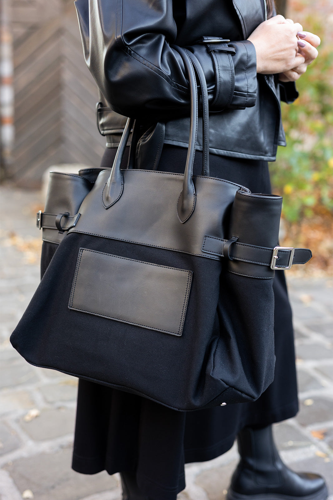 Ez a prémium, valódi bőrrel kombinált vászontáska a modern elegancia és a praktikum tökéletes találkozása. A masszív bőr betétek és a minőségi textil felület időtálló megjelenést és kivételes tartósságot biztosítanak. A tágas belső térnek köszönhetően ideális mindennapi használatra, munkába vagy utazáshoz. A kétoldali állítható bőr csatok különleges, luxus hatású részletként emelik ki a táskát a hétköznapi modellek közül. Minimalista, mégis karakteres designja könnyedén párosítható elegáns és casual szettekkel is. Stílusos választás mindazoknak, akik egy igazán minőségi, prémium női táskát keresnek.