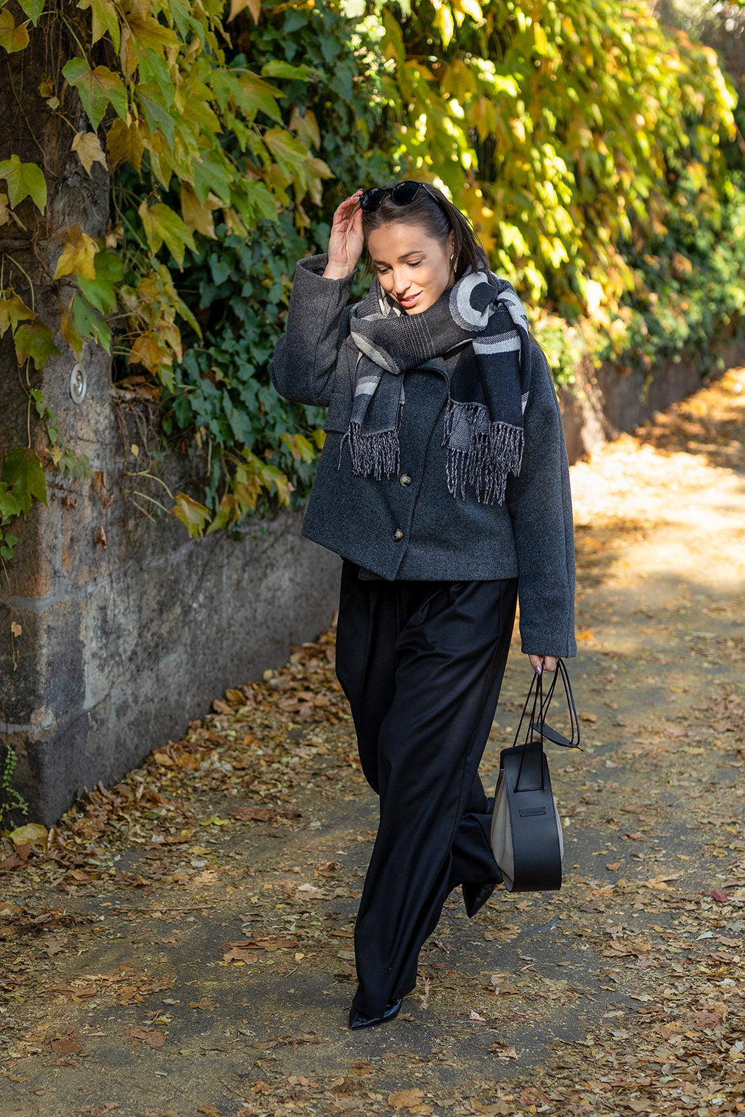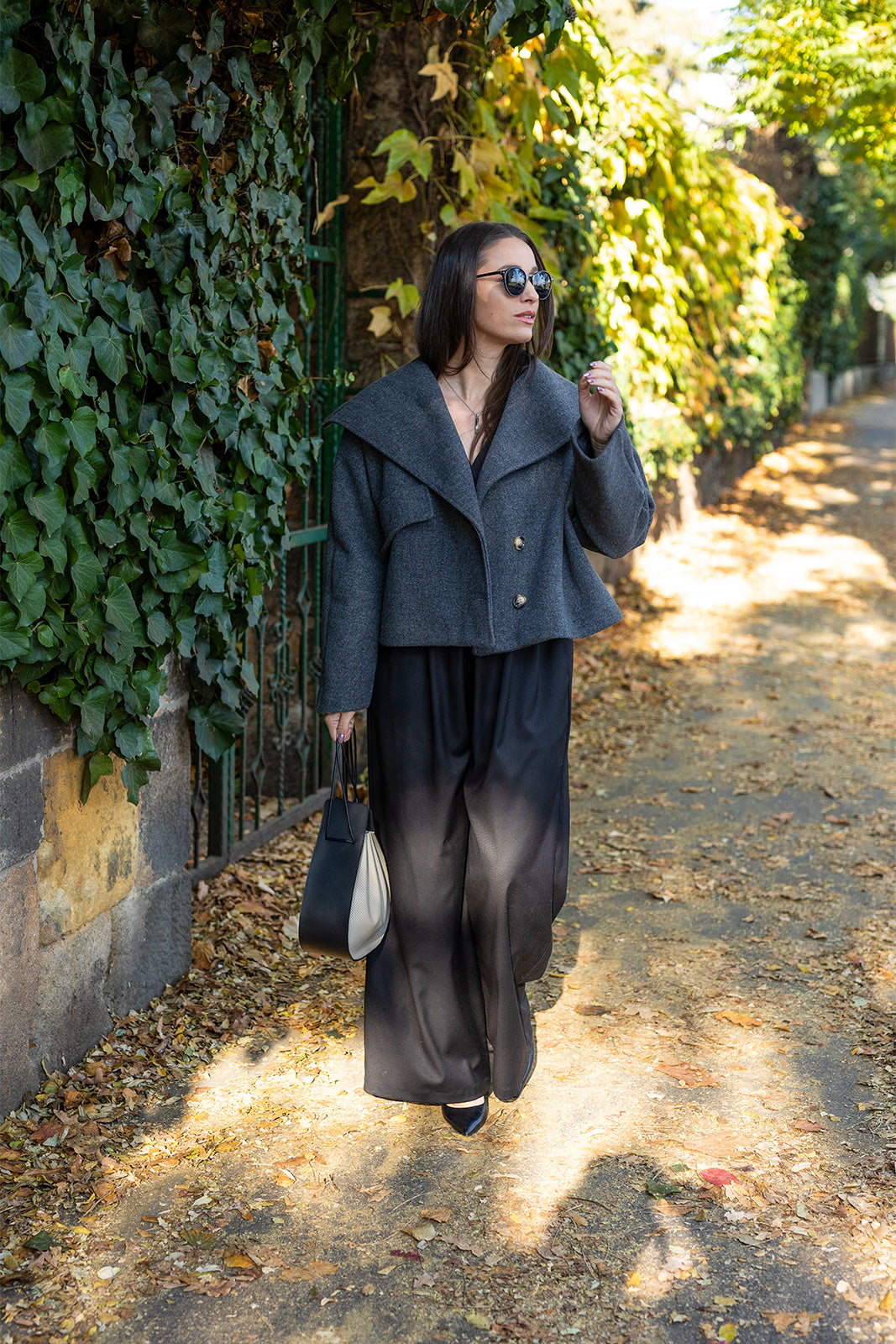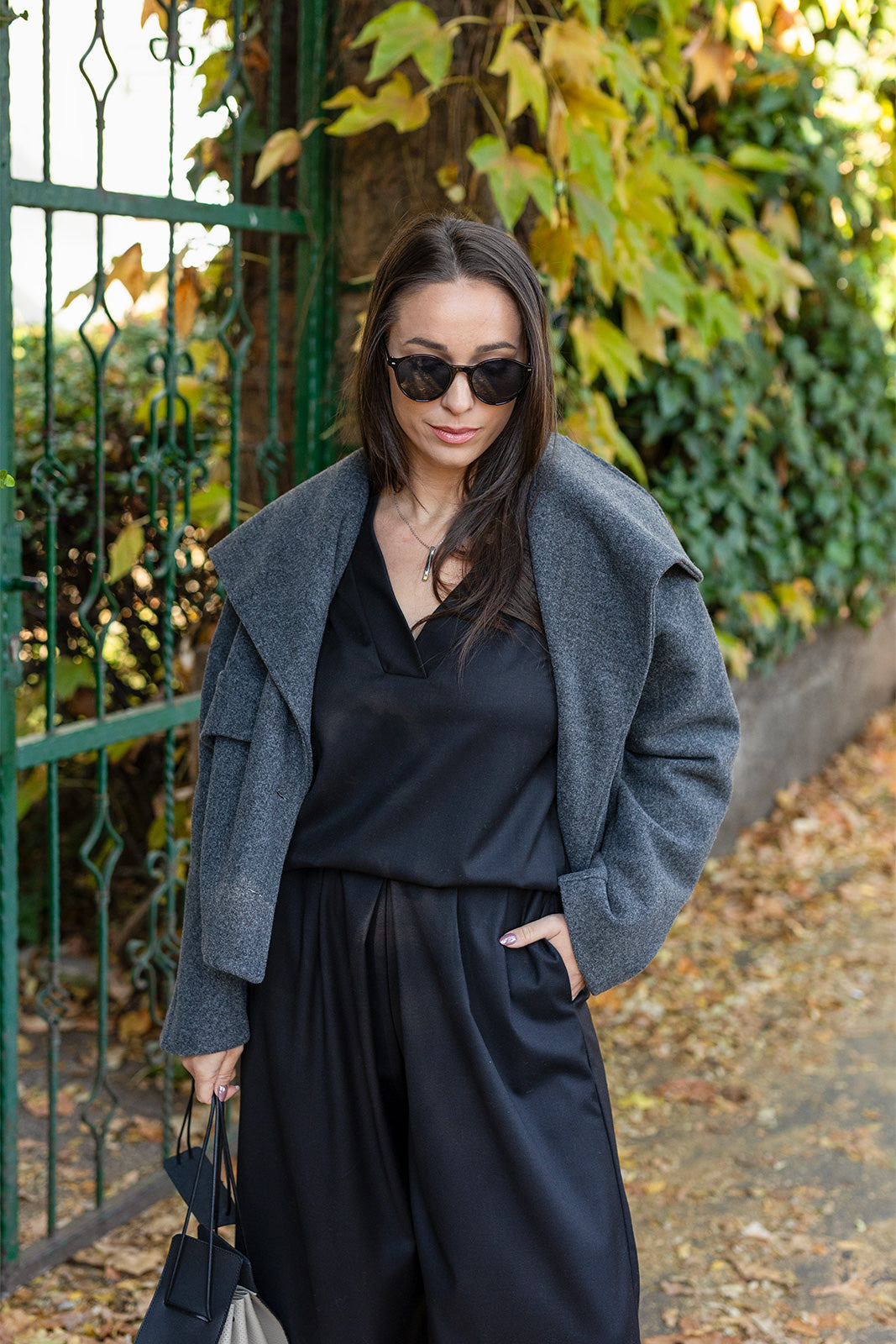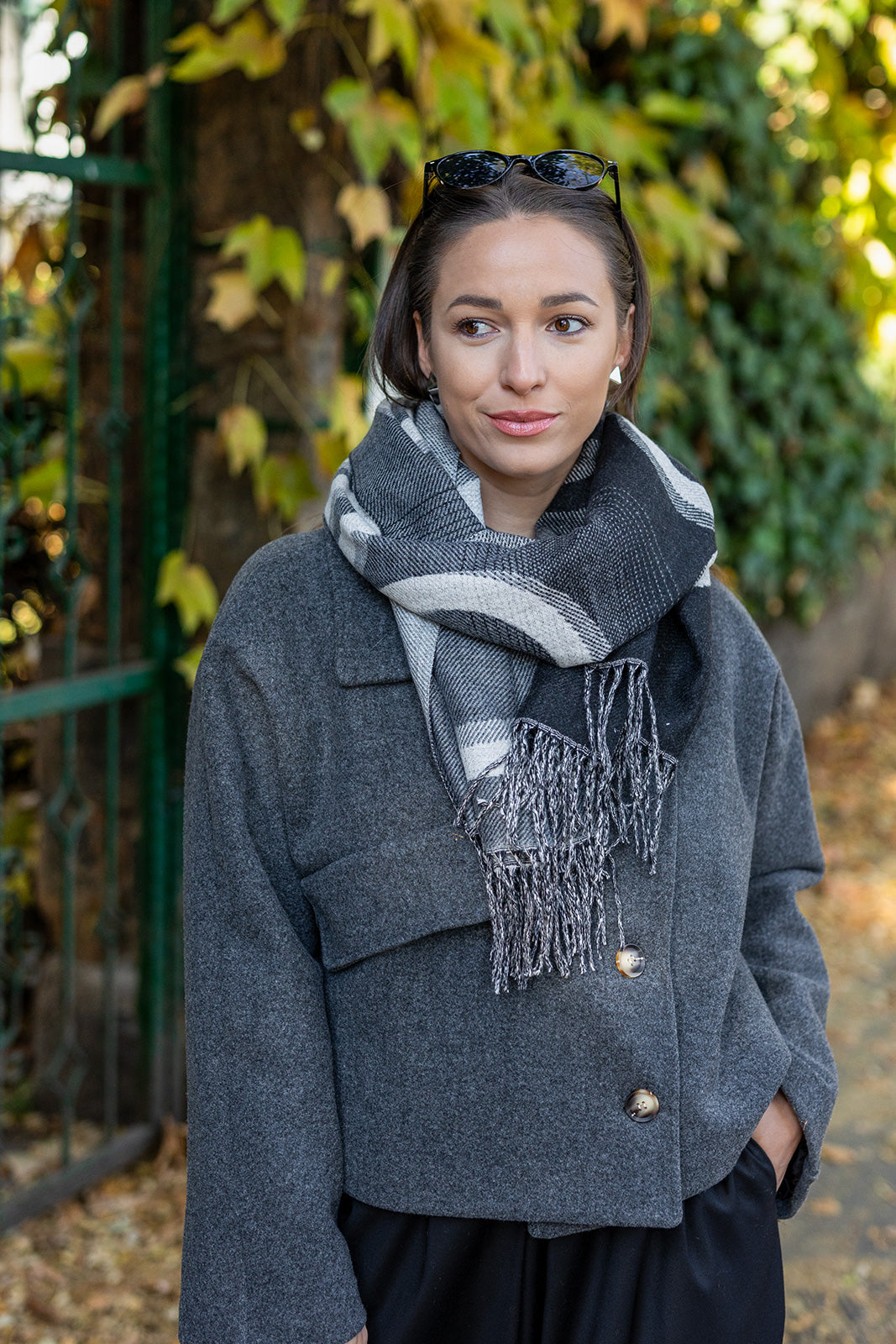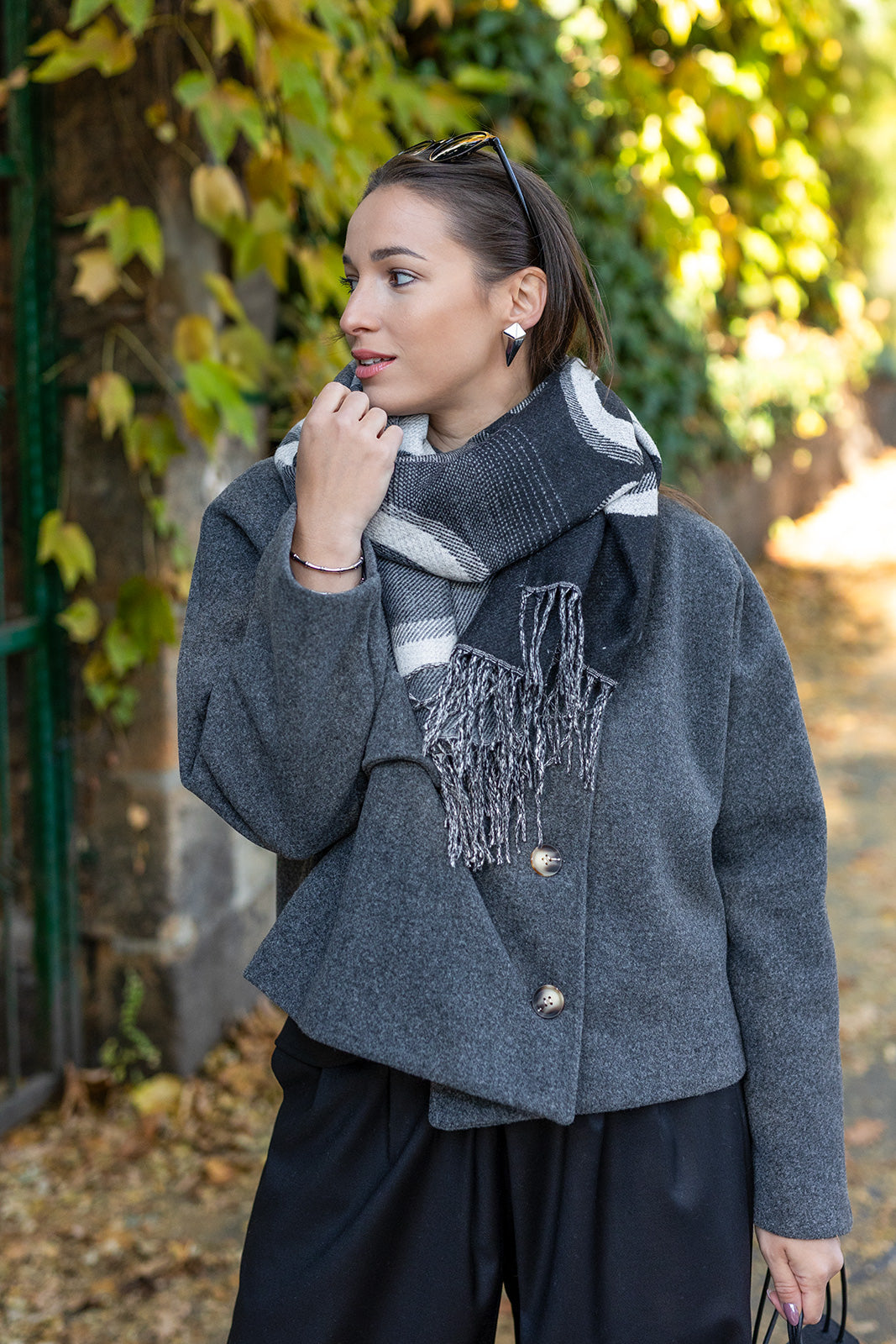 Ez a Black Label kollekciós kabát a letisztult elegancia megtestesítője. Kiváló minőségű, meleg anyagból készült, így ideális választás a hűvös őszi és téli napokra. A rövid, kissé A-vonalú fazon nőies sziluettet kölcsönöz, míg a karakteres, széles gallér és a fémgombos záródás modern, mégis klasszikus megjelenést biztosít. Könnyedén kombinálható elegáns vagy hétköznapi szettekkel egyaránt. Egy prémium, időtálló darab, amely minden stílusos nő ruhatárában megállja a helyét.