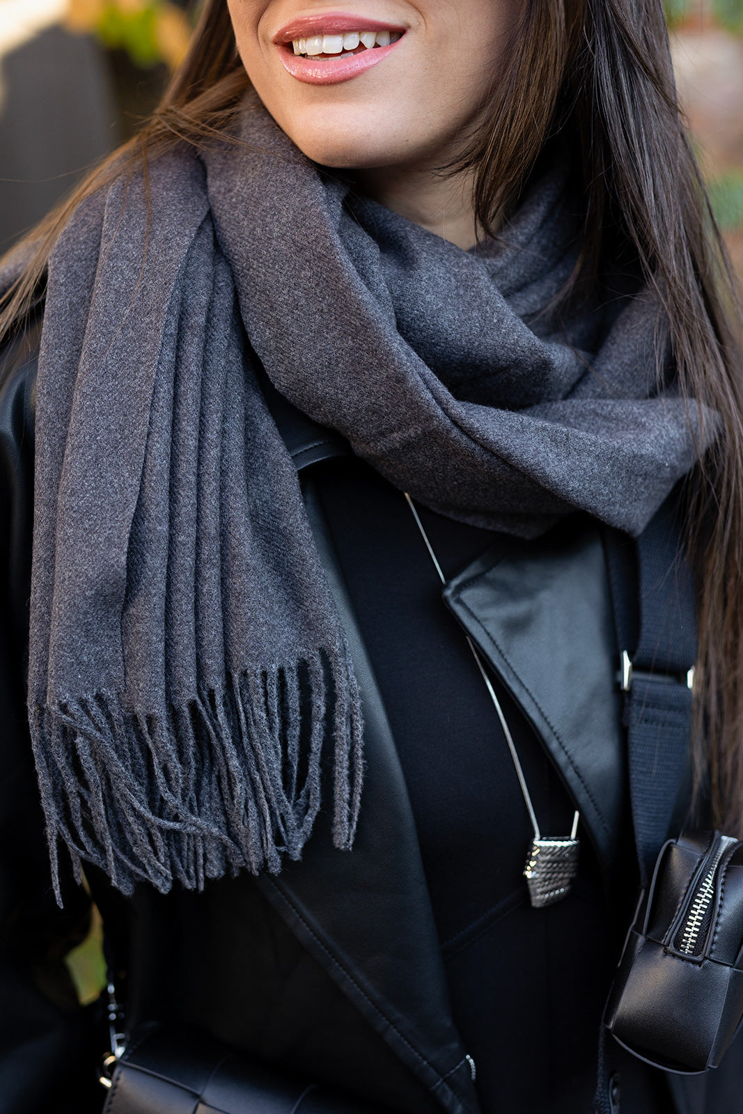 A puha, prémium minőségű sál tökéletes választás a hűvösebb napokra, amikor a kényelem és a stílus egyaránt fontos. Finom tapintású, meleg anyaga gyengéden simul a bőrre, miközben elegáns, letisztult dizájnja bármely kabáttal vagy átmeneti dzsekivel harmonikusan párosítható. A klasszikus rojtos kialakítás időtlen megjelenést ad, így a sál hosszú távon is a ruhatár kedvenc darabja lesz. Nagy mérete lehetővé teszi, hogy többféleképpen viseld – lazán megkötve, vállra terítve vagy akár dupla tekeréssel. Univerzális, sötét árnyalata könnyen kombinálható, ezért ideális választás mindennapi és elegáns outfitekhez is. A tökéletes téli kiegészítő, amely egyszerre praktikus és stílusos.
