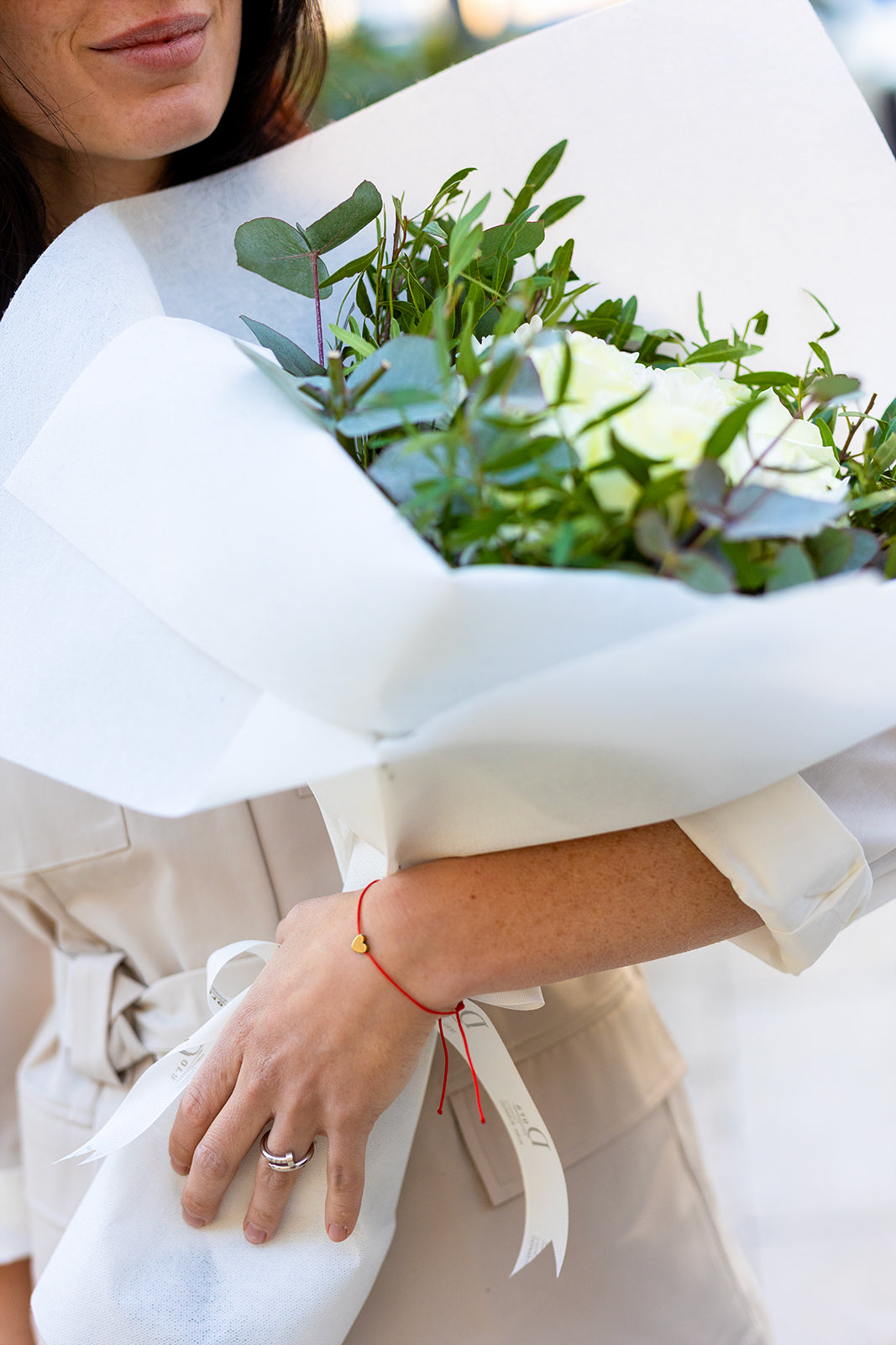 Ez a finom karkötő letisztult eleganciájával és szimbolikus részleteivel hívja fel magára a figyelmet. A vékony zsinóron elhelyezett apró szív medál nőies, romantikus hangulatot kölcsönöz a megjelenésnek. Állítható kialakítása kényelmes viseletet biztosít, így tökéletesen illeszkedik a csuklóhoz. Önmagában viselve is stílusos, de más karkötőkkel rétegezve még karakteresebb hatást kelt. Diszkrét, mégis kifejező kiegészítő a mindennapokra. Ideális választás ajándéknak is, hiszen egyszerre személyes és időtálló.