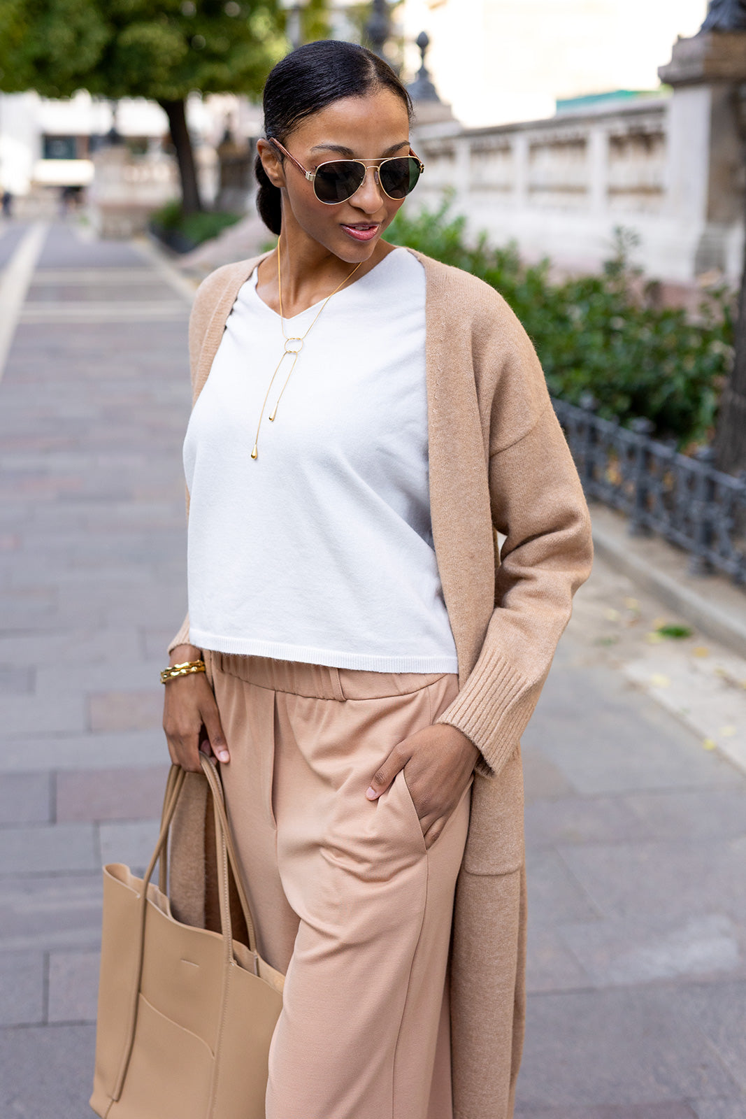 Ez a hosszú, puha kötött kardigán a kényelmes elegancia tökéletes darabja. Finom tapintású anyaga melegen tart, miközben könnyed esésének köszönhetően légies és nőies hatást kelt. Klasszikus fazonja és praktikus zsebei miatt sokoldalúan kombinálható – remekül illik nadrághoz, ruhához vagy farmerhez is. Ideális választás az őszi-téli szezonra, amikor a stílus és a kényelem egyaránt fontos.