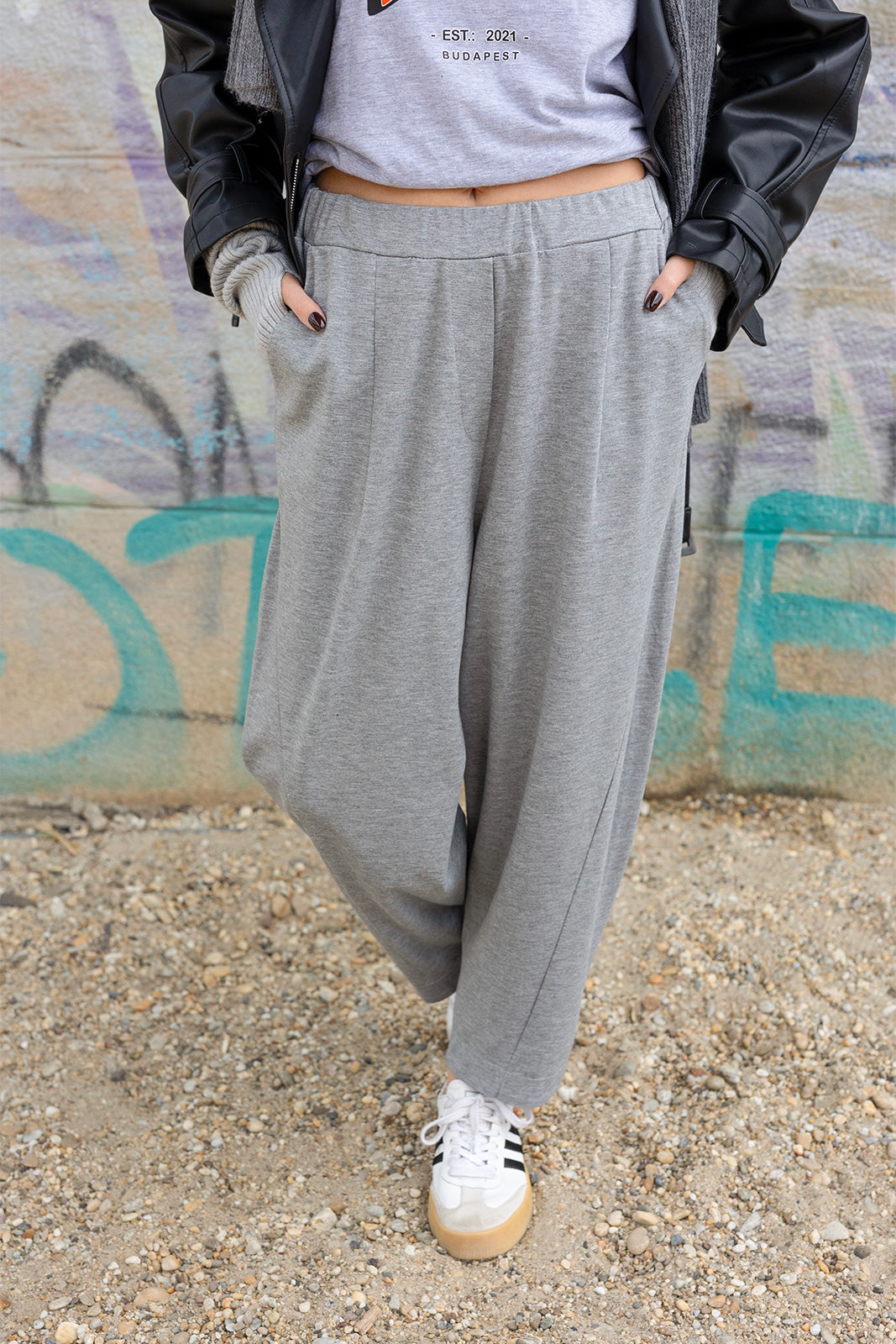 Ez a szürke, bő szárú nadrág a kényelem és a stílus tökéletes kombinációja. Puha, rugalmas anyagának köszönhetően ideális választás a hétköznapi viselethez és a szabadidős programokhoz. Laza szabása szabad mozgást biztosít, ugyanakkor modern, streetwear hangulatot kölcsönöz. A gumírozott derékrész kényelmes illeszkedést garantál egész nap. Tökéletesen párosítható sportcipővel és laza felsőkkel a trendi, lezser megjelenésért.