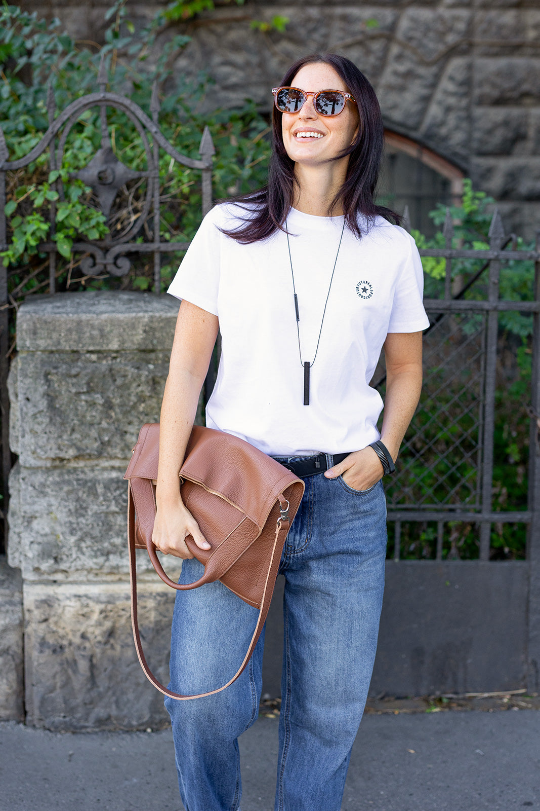Ez a fehér póló egy letisztult, alapdarab, amely bármely ruhatár elengedhetetlen része. Klasszikus fazonja rövid ujjakkal és kerek nyakkivágással kényelmes viseletet biztosít mindennapokra. A mellrészén található apró, kör alakú logó diszkrét, mégis karakteres részlet, ami feldobja az egyszerű dizájnt. Laza farmerrel kombinálva sportos, utcai stílust alkot, de szoknyával vagy blézerrel elegánsabb szett része is lehet. A póló könnyed pamut anyagból készült, így ideális választás a melegebb napokra.