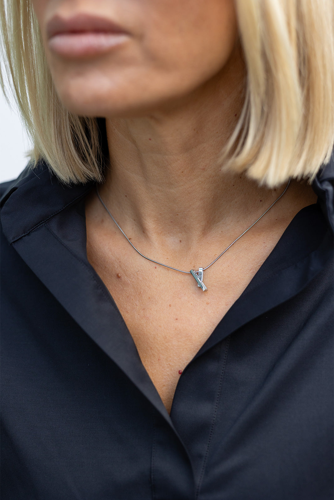 Ez a finom, ezüstszínű nyaklánc letisztult és modern formavilágával a minimalista stílus kedvelőinek tökéletes választás. Középen egy apró, keresztbe metszett medál díszíti, amely elegáns, mégis visszafogott megjelenést biztosít. Könnyed kialakítása miatt egész nap kényelmes viselet, és harmonikusan illeszkedik mind hétköznapi, mind alkalmi öltözékekhez. Egy időtlen kiegészítő, amely diszkréten emeli ki a viselője stílusát.