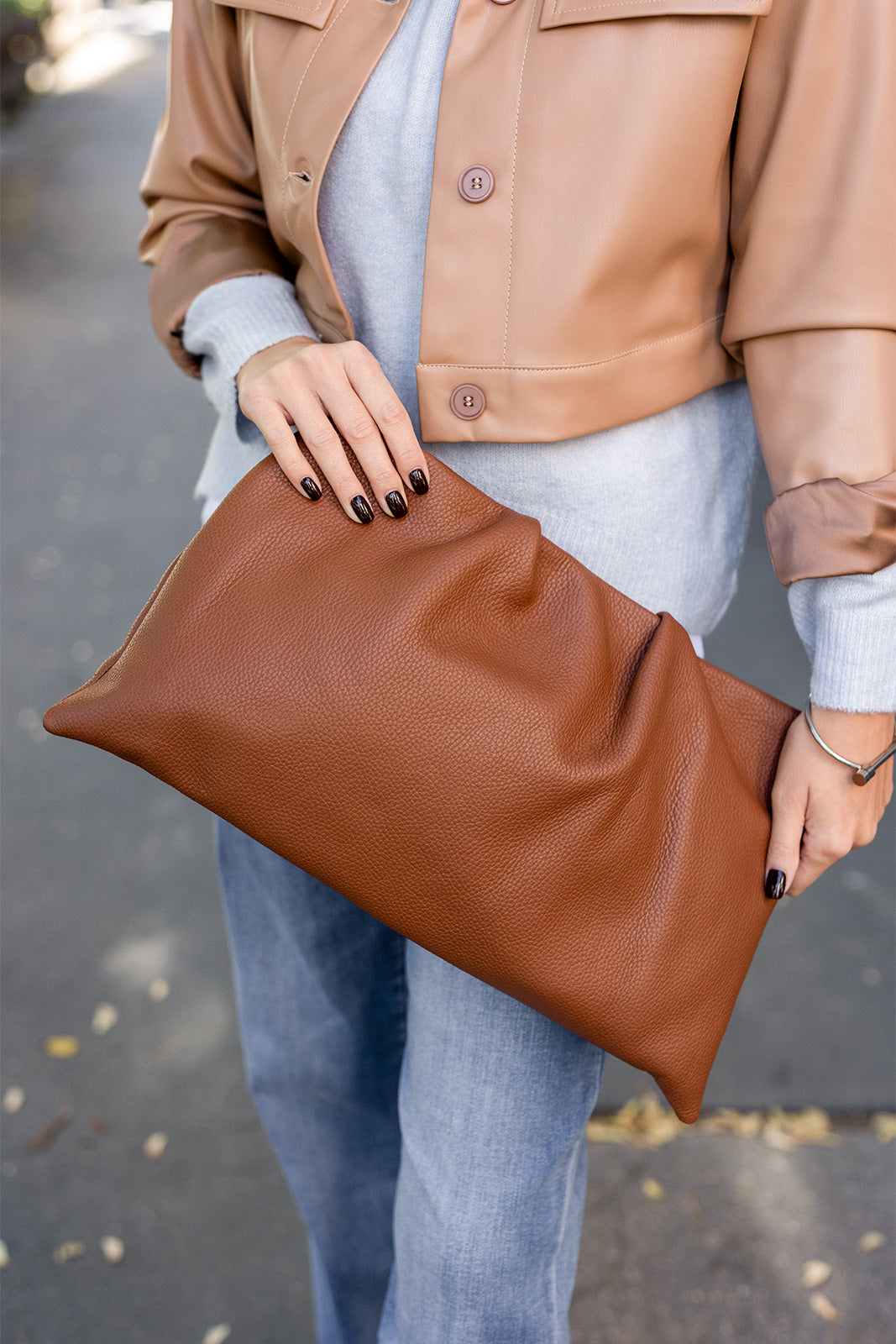 Ez a nagyméretű, barna bőr táska egyszerre elegáns és praktikus választás. Letisztult, minimalista designja a puha, természetes hatású bőrrel kombinálva modern, időtálló kiegészítővé teszi. Kényelmesen kézben tartható, de mérete miatt akár a mindennapi használathoz is ideális, hiszen könnyedén elférnek benne a szükséges holmik. A táska strukturálatlan, lazán redőzött kialakítása oldott, mégis stílusos megjelenést kölcsönöz. Neutrális árnyalata miatt szinte bármilyen szettel jól kombinálható, legyen az elegánsabb ruha vagy hétköznapi farmeros összeállítás.