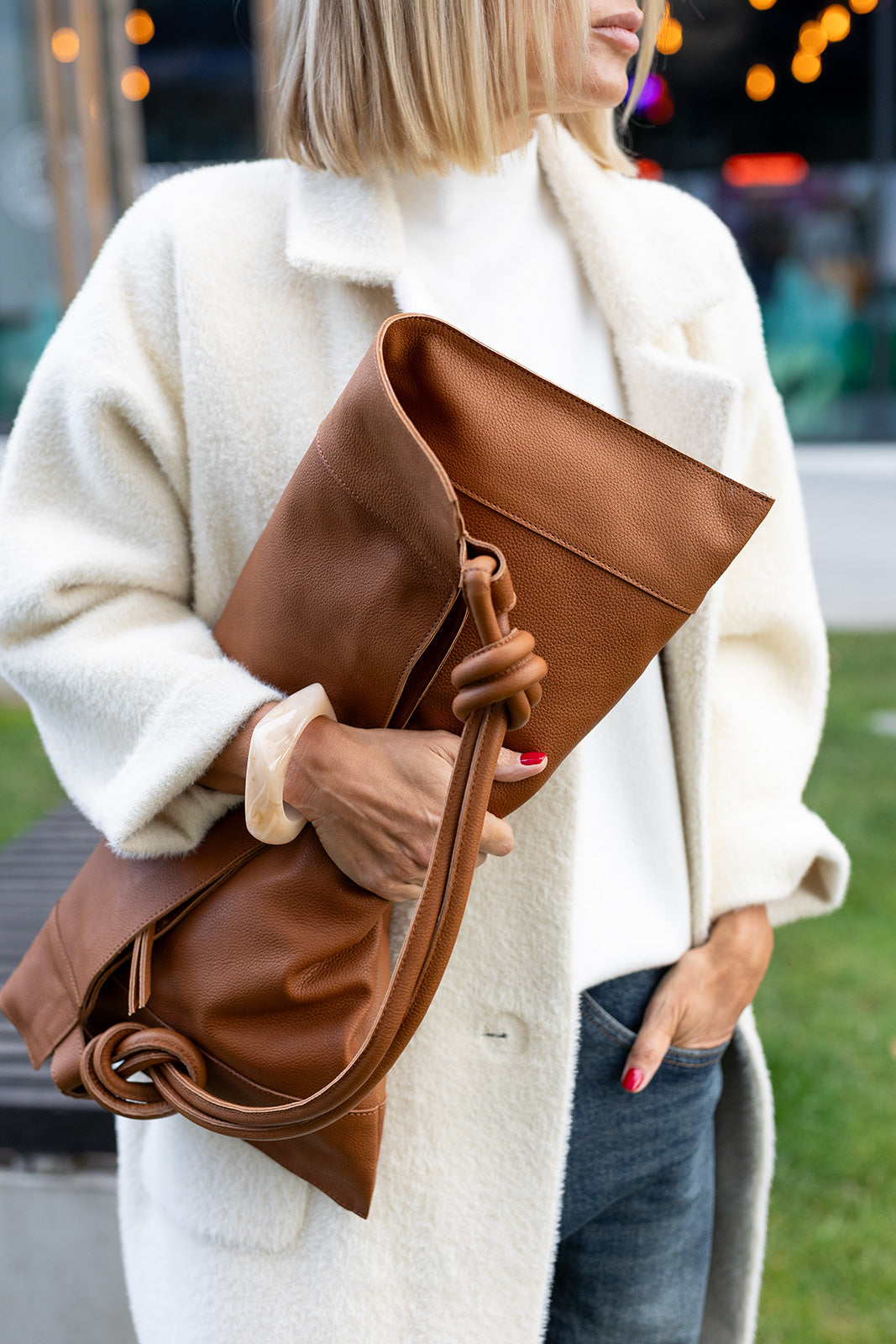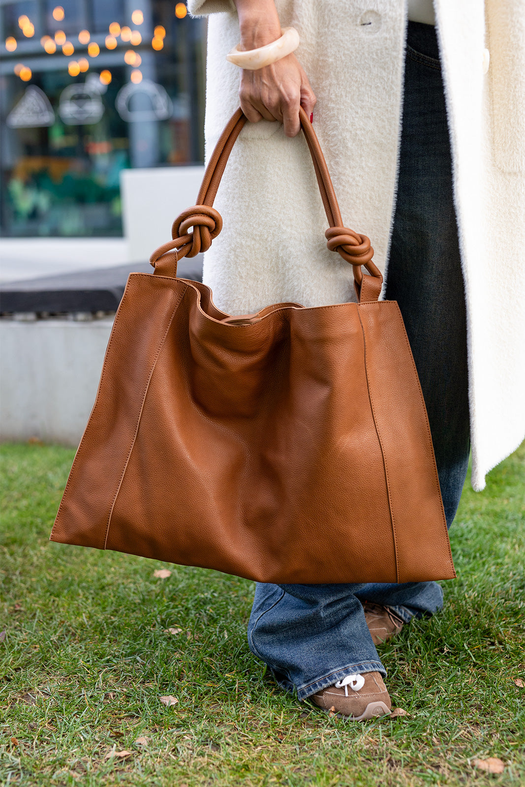 Ez a nagy méretű, bőr shopper táska a modern elegancia és a praktikum tökéletes kombinációja. Puha, strukturált anyaga tartós és könnyen tisztítható, így hosszú távon is megbízható társad lesz. A vastag, csomózott pántok nemcsak stílusosak, hanem kényelmes hordozást is biztosítanak. Tágas belsejébe könnyedén elfér minden napi szükségleted, akár laptop, dokumentumok vagy bevásárlás közben szerzett holmik. Minimalista kialakítása miatt könnyen kombinálható elegáns és hétköznapi szettekkel is.