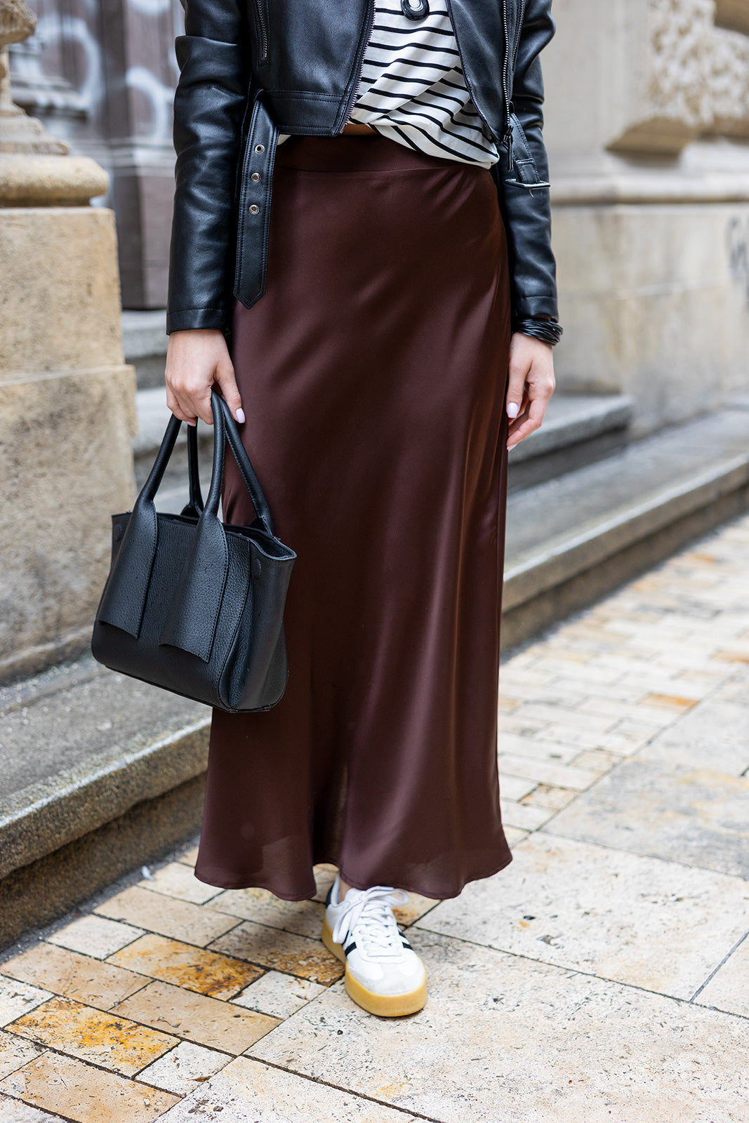 Kézben viselve különösen nőies hatást kelt, miközben minimalista kialakítása könnyedén illeszkedik casual és elegáns összeállításokhoz is. Egy időtálló, sokoldalúan kombinálható kiegészítő, amely magabiztos karaktert ad a megjelenésnek.