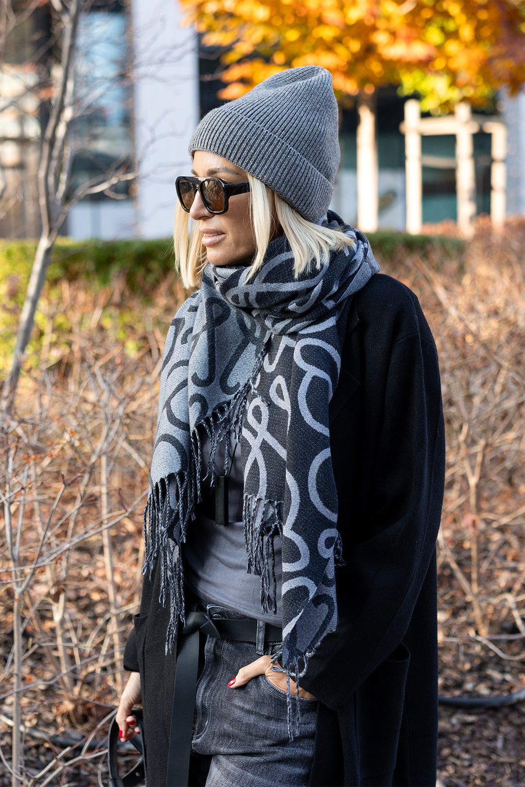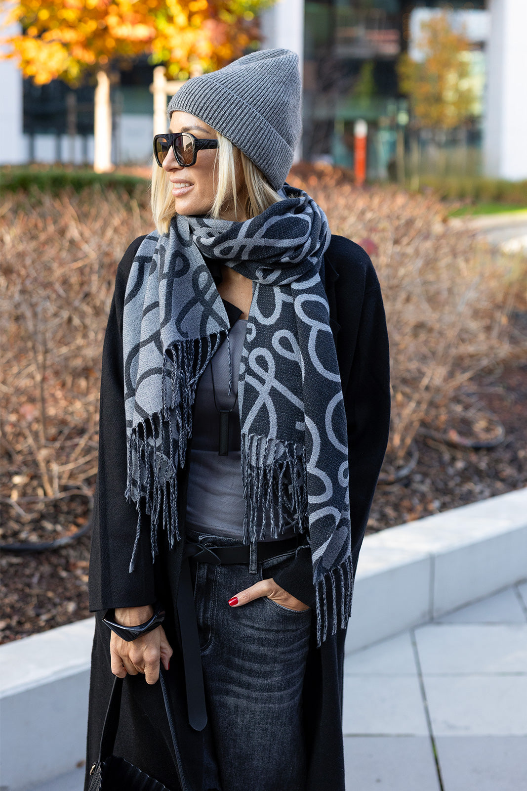 Ez a puha, meleg sál stílusos mintájával és prémium minőségével tökéletes kiegészítő a hűvös napokra. A kényelmes, finom tapintású anyag egész napos komfortot biztosít, miközben elegáns megjelenést kölcsönöz. Modern grafikus mintája könnyedén feldob bármilyen outfitet, legyen az sportos, laza vagy akár elegáns összeállítás. Nagy mérete miatt sokféleképpen viselhető: lazán a nyakba csavarva, kabáton átvetve vagy szorosan melegen tartva. Strapabíró, jól kombinálható szürke tónusai miatt igazán időtálló darab. Ha egy trendi, mégis praktikus őszi-téli sálat keresel, ez a modell ideális választás.