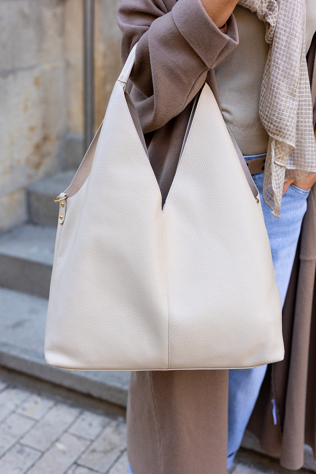 Ez a bézs női táska letisztult formavilágával és prémium megjelenésével a modern kapszulagardrób sokoldalú alapdarabja. Finoman strukturált felülete elegáns karaktert ad, míg tágas kialakítása praktikussá teszi a mindennapi használat során. Lágy esésű formája kényelmes viseletet biztosít vállon hordva is. Semleges árnyalata könnyedén kombinálható casual és elegáns szettekkel egyaránt. Diszkrét aranyszínű részletei kifinomult hangsúlyt adnak a minimalista dizájnnak. Időtálló női táska, amely stílusos kísérője lehet a városi mindennapoknak.